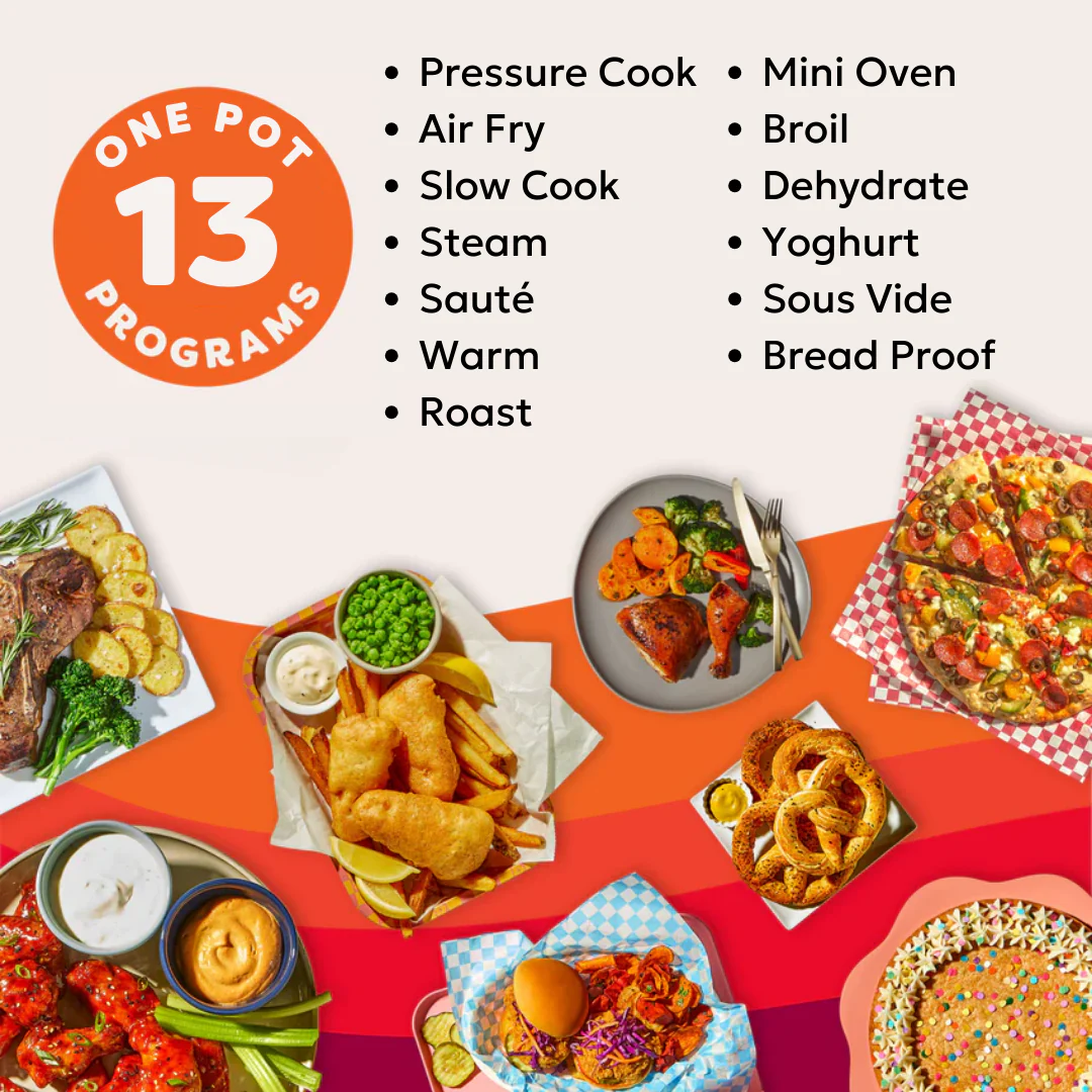 What’s better than an Air Fryer? An Air Fryer with the addition of the Instant Pot functions you know and love, all in one model, with just one lid! Say hello to the space-saving single lid cooker which combines an air fryer and Instant Pot in one. Go from pressure cooking to air frying simply by removing the pressure cooking cover, so you can use one function after another all in the same pot. Melt the top of pasta dishes for a cheesy finish or grill your cottage pies with ease – this is ultimate one pot convenience.